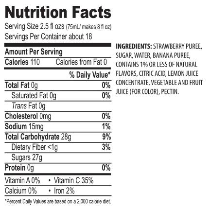 Klasické duo chutí – jahoda banán! Keď sa davový favorit stretne s ľahkou prípravou, nemôžete urobiť chybu. Jednoducho otvorte, nalejte a zmiešajte s ľadom. Clean Label: Maui Fruit Blends neobsahujú kukuričný sirup s vysokým obsahom fruktózy, konzervačné látky ani umelé farbivá a príchute. Skladovateľnosť: 360 dní od dátumu výroby. Po otvorení uchovajte v chladničke a spotrebujte do 30 dní. Strawberry Margarita Ingrediencie: 360ml ľadu 40ml Tequily 30ml Strawberry Beverage Syrup 90ml Maui Margarita Príprava: Zmiešajte všetky ingrediencie a rozmixujte do hladka. -------------------------------------------------- ----------------------- Strawberry Daiquiri Ingrediencie: 360ml ľadu 40ml Rumu 120ml Maui Strawberry Príprava: Zmiešajte všetky ingrediencie a rozmixujte do hladka. -------------------------------------------------- --------------------- Strawberry Colada Ingrediencie: 360ml ľadu 40ml Rumu 30ml Maui Strawberry 90ml Maui Pina Colada Príprava: Zmiešajte všetky ingrediencie a rozmixujte do hladka.