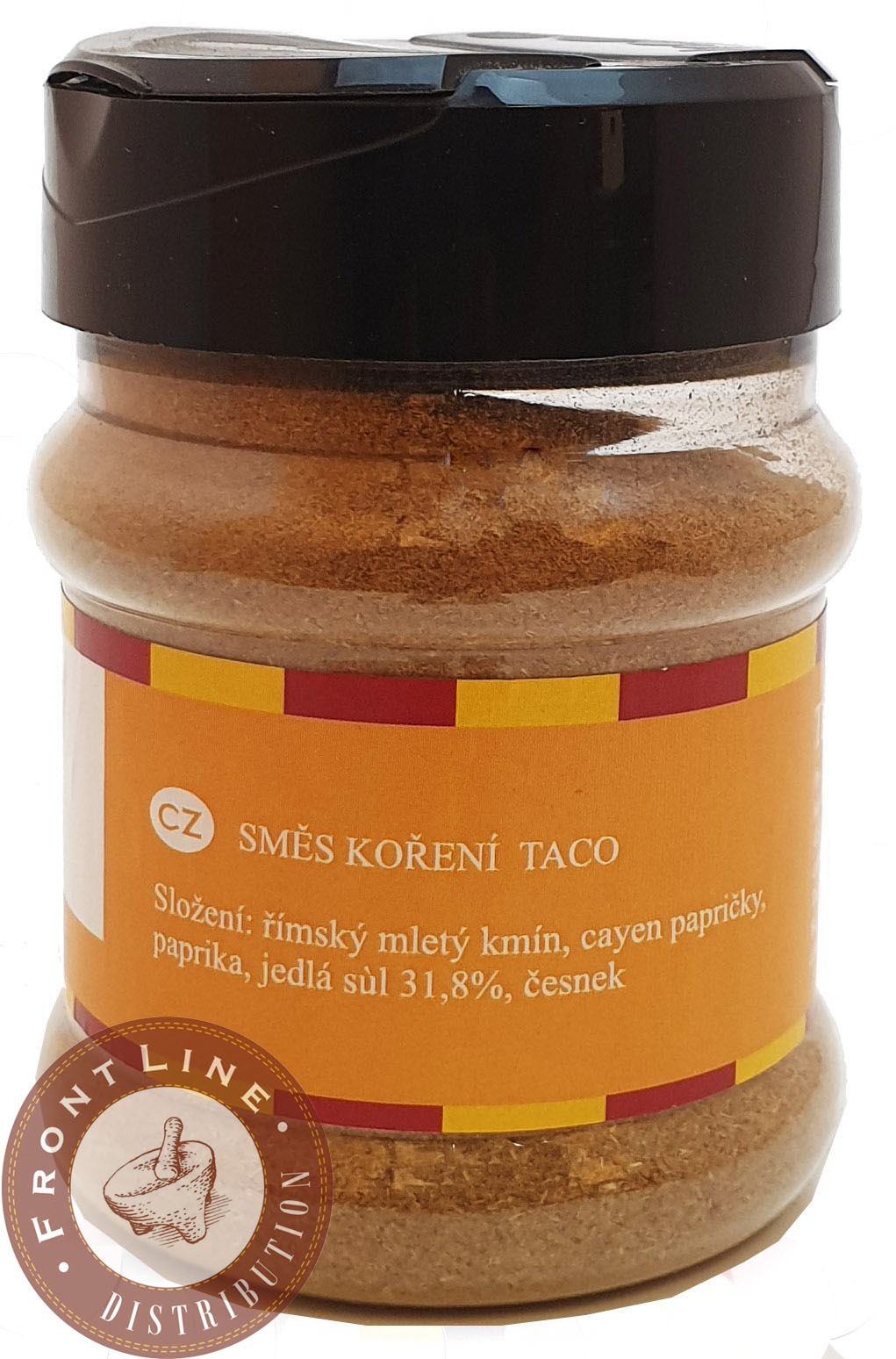 Tacos je tradičné mexické jedlo – malá tortilla naplnená mäsovou alebo zeleninovou zmesou, veľmi obľúbené ako street food, alebo ako predjedlo. Pravú mexickú chuť dodáte pokrmu touto koreniacou zmesou. Zloženie: Mletá rímska rasca, cayen papričky, jedlá soľ 13,3%, cesnak, paprika Použitie: Zmes korenia určená na prípravu mexickej špeciality Tacos. Veľmi dobré aj na grilovanú zeleninu a do mäsových pokrmov, napríklad do mletého mäsa. Obsah balenia: 150 g Krajina pôvodu: USA
